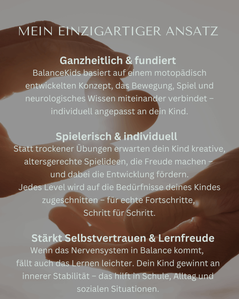BalanceKids fördert die ganzheitliche Entwicklung und das Wohlbefinden von Kindern. Es ersetzt keine medizinische oder therapeutische Behandlung.